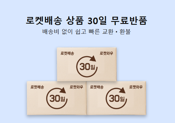 로켓와우 이용자는 로켓배송 상품을 구매 후 30일 이내에 반품할 경우, 별도의 비용 없이 반품이 가능합니다.