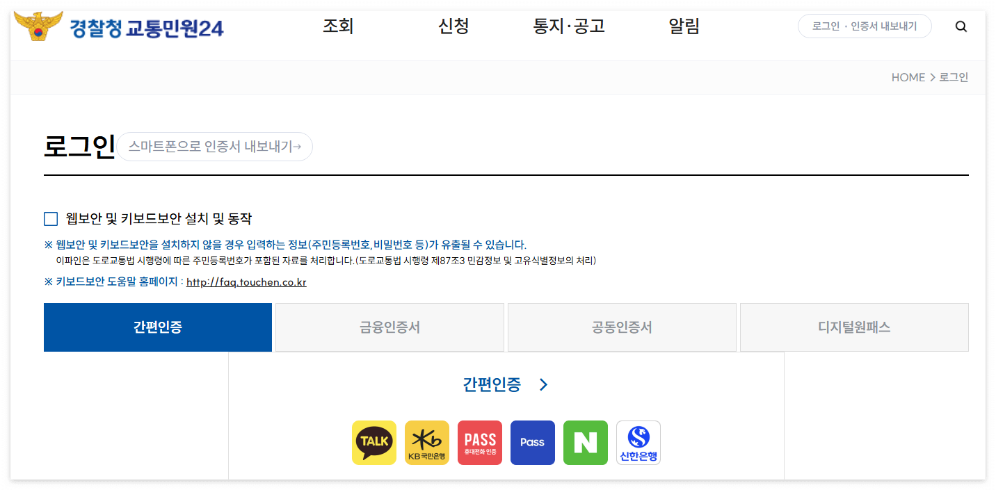 - 경찰청 '교통민원24(이파인)' 홈페이지에 접속합니다.