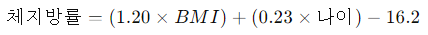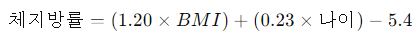BMI로 대략적인 체지방률을 계산할 수도 있습니다. 근육량을 반영하지 않아 정확도는 낮지만 참고용으로 활용됩니다.