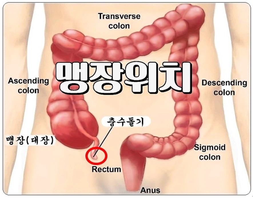 이 부위에 염증이 발생하면 우리가 흔히 부르는 맹장염, 즉 충수염이 발병하게 됩니다.