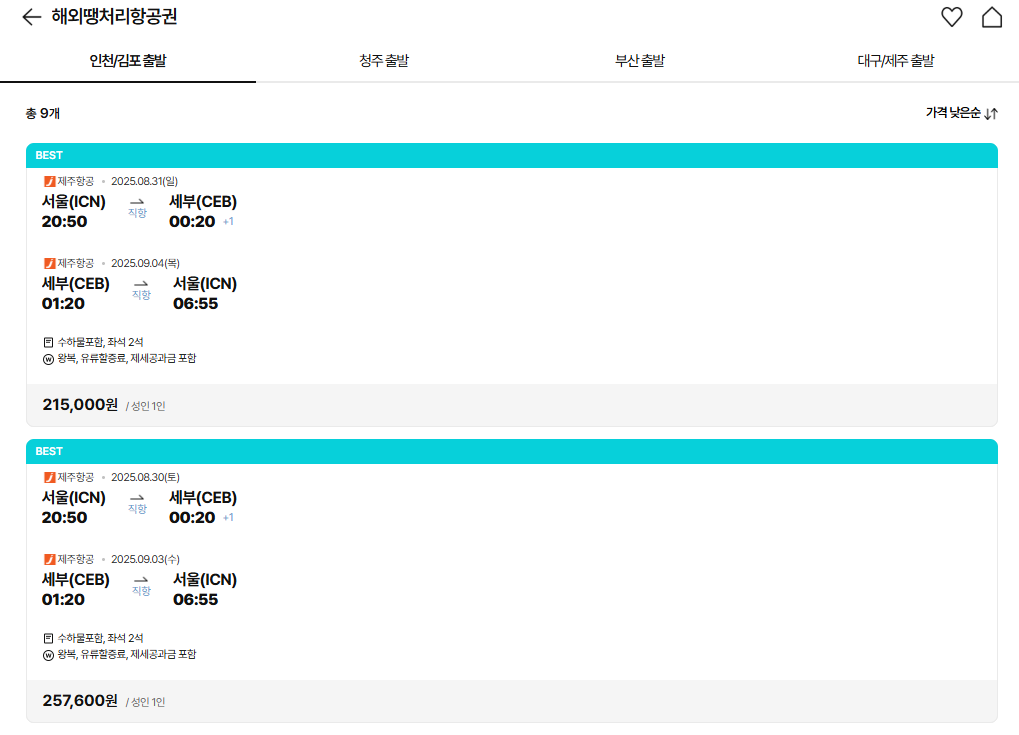 - 노선, 시간대, 이용 가능한 항공사 종류가 제한적일 수 있습니다.