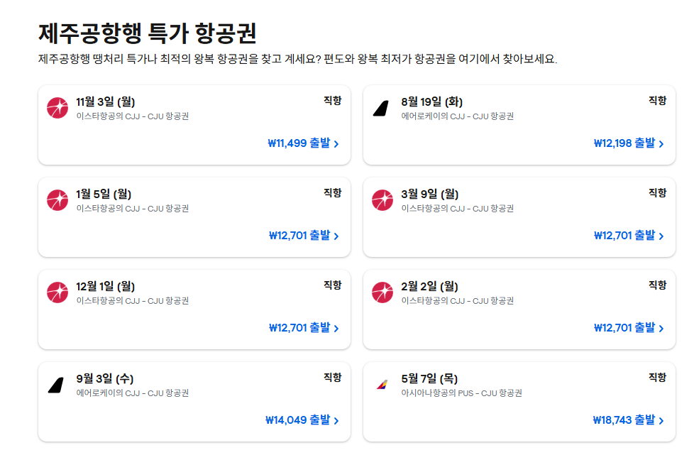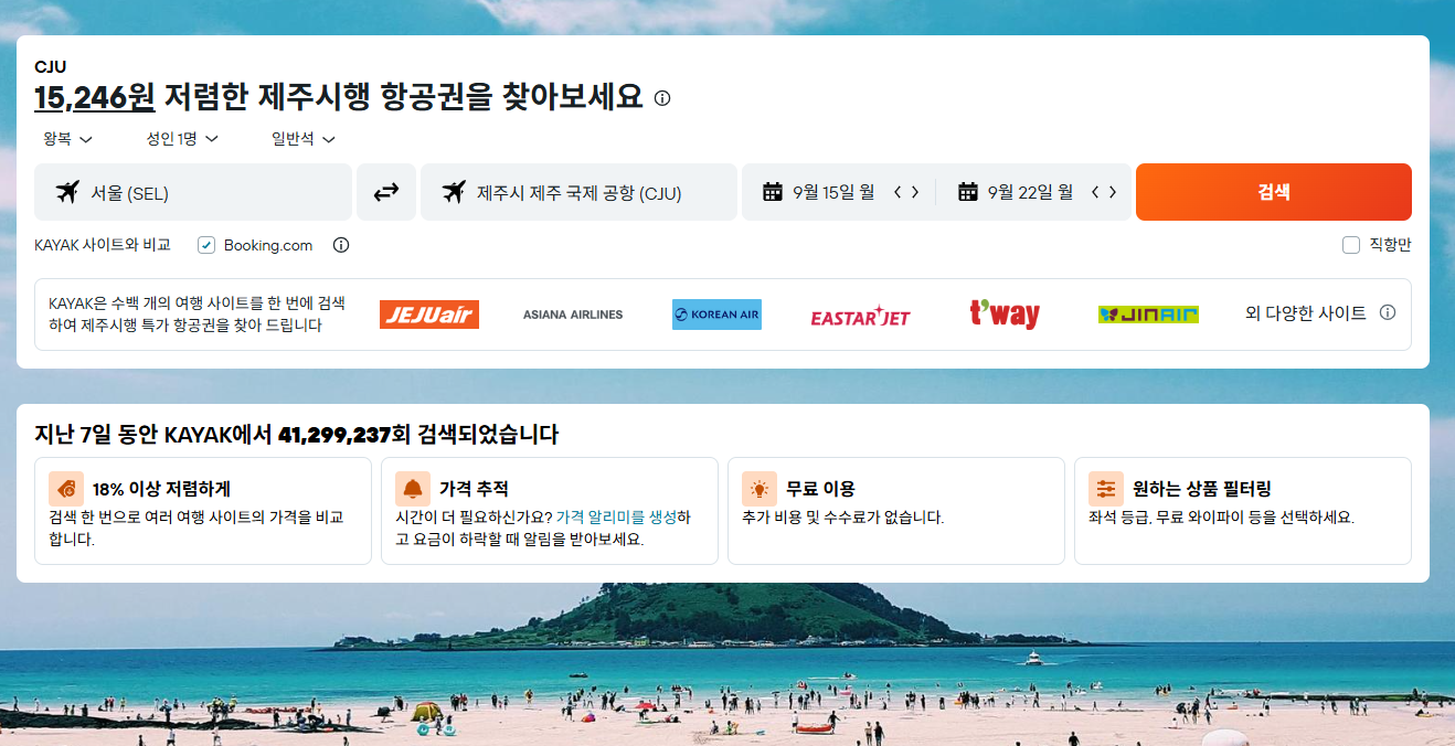 37,582원 제주시행 저가 항공권 - 카약(KAYAK)
