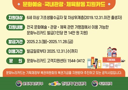이 카드를 통해 국민들은 문화예술 활동뿐 아니라 국내여행, 체육 관련 활동까지 다양한 영역에서 경제적 지원을 받을 수 있어 생활 속 문화 향유 폭을 넓힐 수 있습니다.