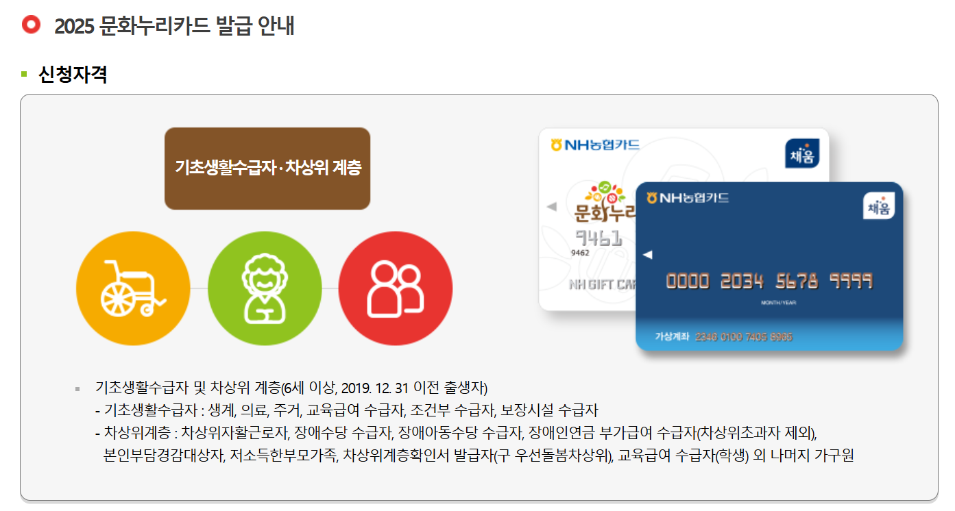문화누리카드는 만 6세 이상(2019년 12월 31일 이전 출생자)의 국민 중 일정 기준을 충족하는 분들이 신청할 수 있습니다.